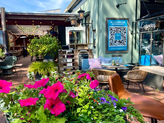 - Restaurant Olle Stee heeft een ruim terras met uitzicht op de levendige brink.