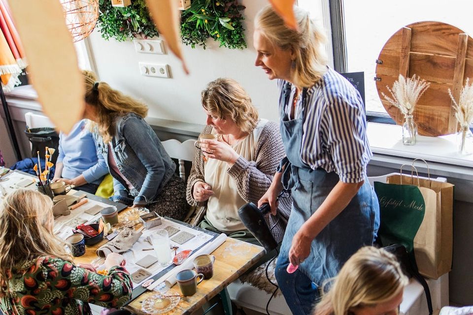 Locatie: MeppelOp de sfeervolle locatie van ‘Pand M’ aan het kerkplein in Meppel kun je zowel creatief als culinair komen genieten. Colour your Wings verzorgt een workshop waarbij je 2 tegeltjes kunt maken van klei en glazuur.