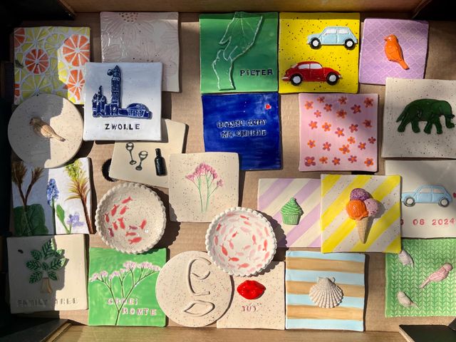 De workshop duurt ongeveer 3 uur en tussendoor geniet je van heerlijke huisgemaakte taartjes, rijk belegde sandwiches en scones van Pand M. Na afloop worden de tegeltjes voor jou afgebakken en na ongeveer 2 weken kun je ze ophalen.