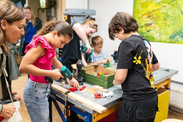 Timmeren, zagen, lijmen, boren, knutselen en experimenteren voor kinderen van 6 t/m 14 jaar.