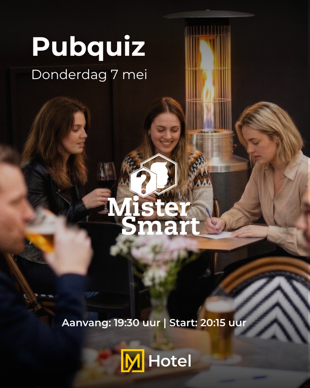 Onder leiding van de enthousiaste quizmaster Mister Smart spelen we de leukste pubquiz van Meppel. We spelen verrassende rondes, met vragen waar iedereen aan mee kan doen, van jong tot oud. Schuif gezellig aan, werk samen en schep na afloop vooral een beetje op over jouw feitenkennis.