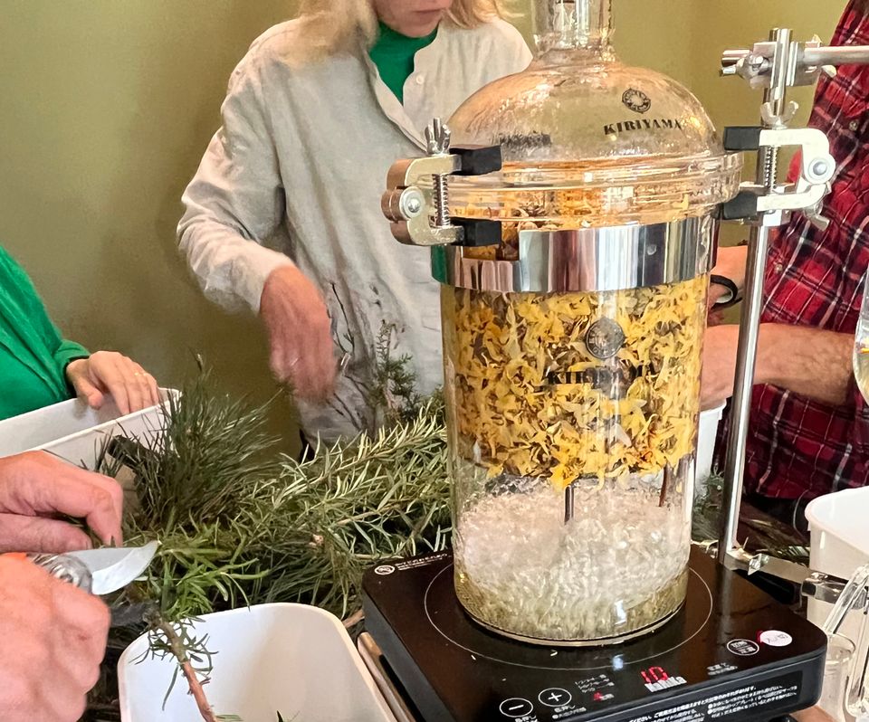 • Zelf een Kuromoji-hydrolaat destilleren met de authentieke Kiriyama-stoomdistilleerder