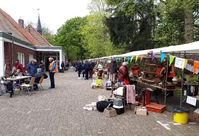 Jaarlijkse marktdag rondom de Ontmoetingskerk in Pesse met kraamverkoop, verloting, catering, springkussen, kinderhoek en veel gezelligheid.