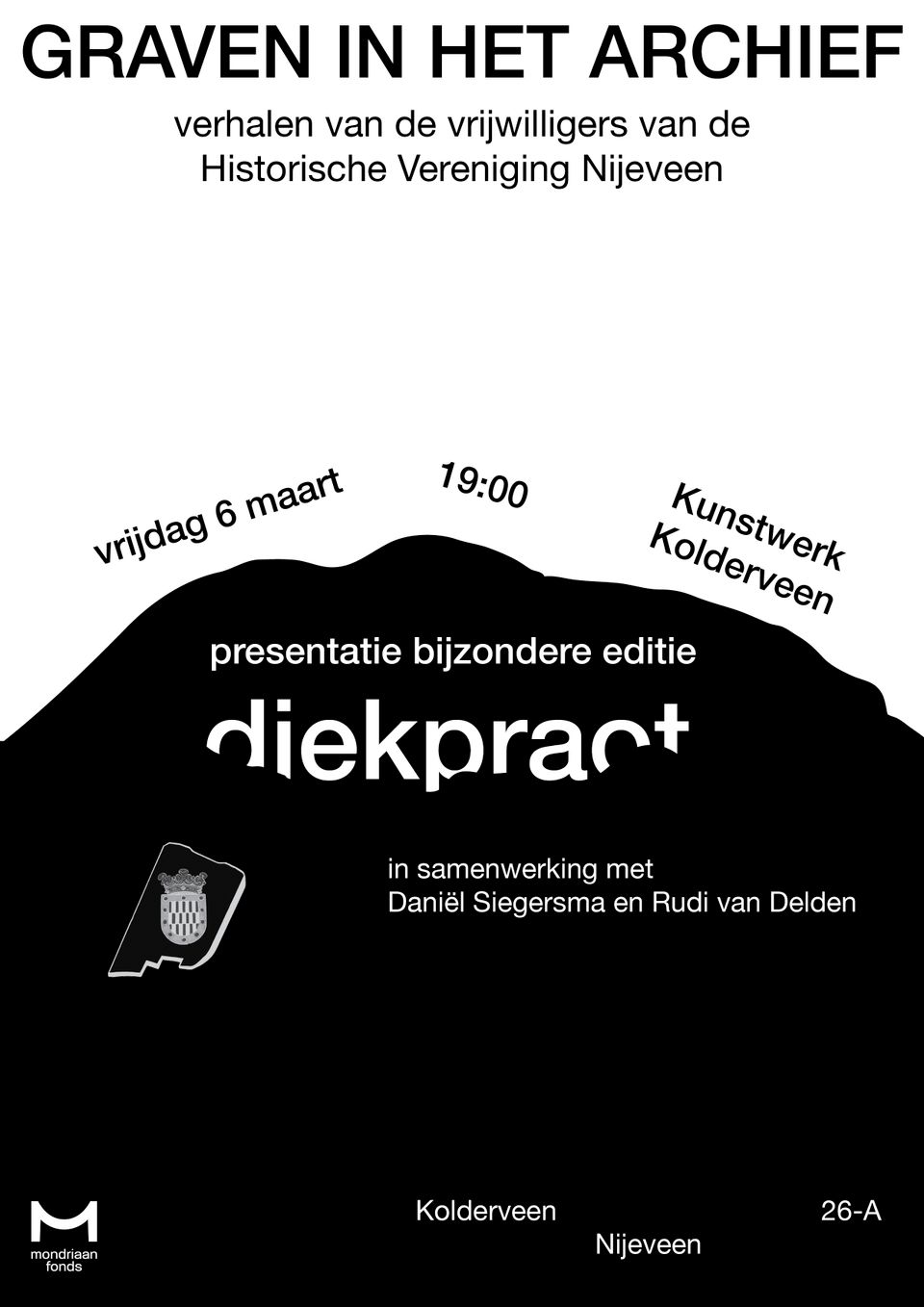 Tot 17 mei is Daniël Siegersma artist-in-residence bij Kunstwerk Kolderveen. Tijdens deze periode werkt hij aan het nieuwe project Van een molshoop een berg maken(oftewel: Van een mug een olifant maken). Voor dit project verzamelt hij lokale verhalen uit Kolderveen, Nijeveen en omgeving: verhalen die klein lijken, maar groot zijn in betekenis.