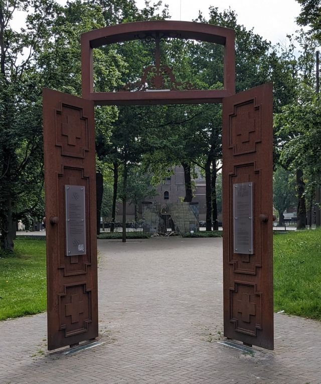 In 1975 brandde op het Marktplein in Emmen het oude gemeentehuis af. In 2015 is een replica van de entree geplaatst, maar dan in XXL-formaat.