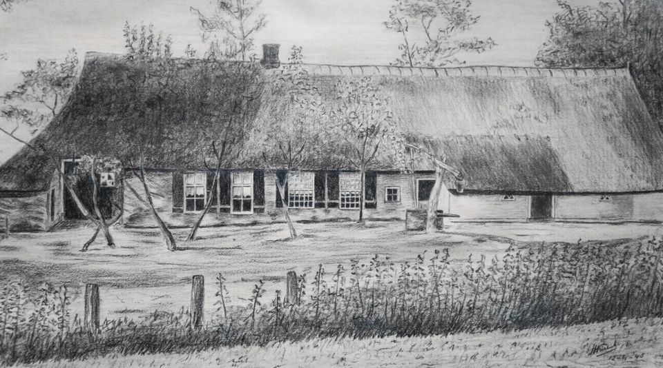 Deze plek in het Oostersebos is het meest gefotografeerde in Schoonebeek. Alle boerderijen waren voorheen eigendom van de familie Maags, die in 1780 uitstierf. Ze hadden twee booën in de Twist staan, die bij ze verloren bij de grensstrijd rond 1800.