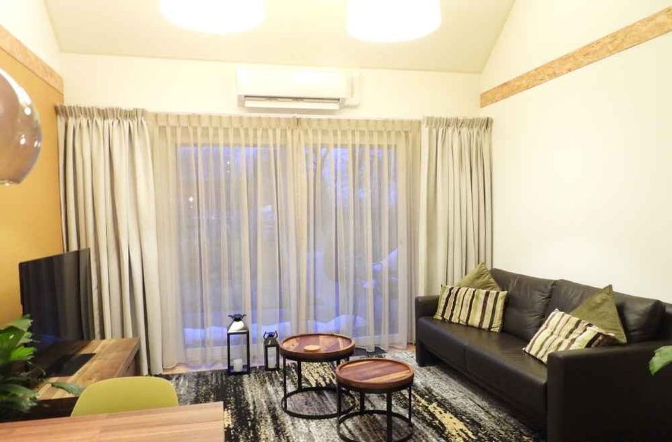 Er is een centrale keuken aanwezig met vaatwasser, airfryer, combimagnetron, wasmachine en droger. elk appartement beschikt over een koelkast, televisie, servies, airco, een eigen badkamer met regendouche, dubbele wastafel en toilet.