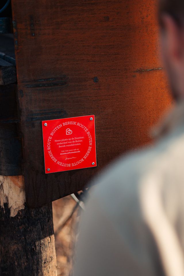 Tijdens de Buiten Bereik wandelroute kom je deze Zinzitter tegen: een bijzondere plek om te zitten, te reflecteren en gewoon even te zijn. De Zinzitter staat in een afwisselend landschap. Heide, bos en water helpen je vertragen. Wat mag bezinken? Wat laat jij los?