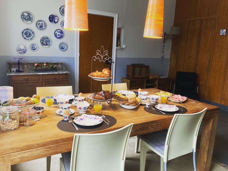 Beneden in de karakteristieke (eet)kamer wordt het luxe ontbijt geserveerd. Koffie- en theefaciliteiten zijn aanwezig. Zomers kan het ontbijt ook buiten op het terras worden genuttigd.