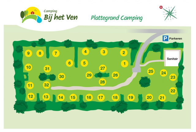De camping is omgeven door een smalle strook bos met een (droog) vennetje erin, waaraan de camping haar naam ontleent. Rondom het vennetje en door de bosstrook loopt een wandelpad. Ideaal voor een mooie avondwandeling. Een bossingel vormt de scheiding tussen de camping en de omliggende akkers en weilanden.