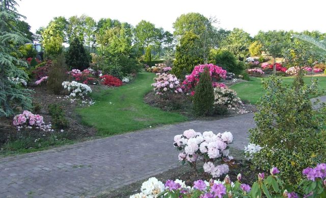 Het park is ruim opgezet en heeft verschillende sferen. In de bostuin groeien eiken en inheemse loofbomen, met daaronder grote, bloeirijke rhododendrons. In het dennenbos ontdek je bijzondere soorten met opvallend blad en bloem. De coniferentuin laat zien hoe laagblijvende rhododendrons en azalea’s prachtig samenkomen, ook als inspiratie voor kleinere tuinen.